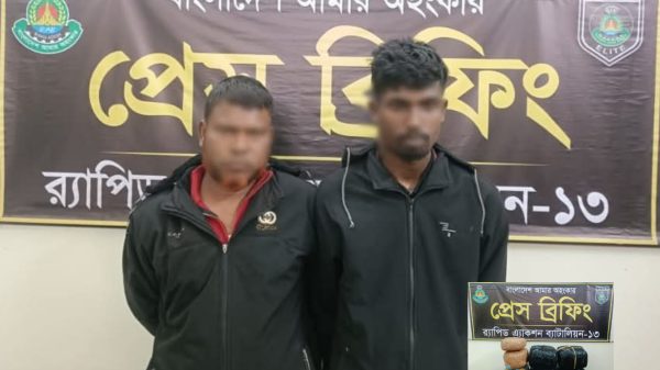 রংপুর প্রতিনিধিঃ রংপুর মেডিকেল মোড় এলাকায় র্যাপিড অ্যাকশন ব্যাটালিয়ন (র্যাব)-১৩-এর অভিযানে ২৯ কেজি গাঁজাসহ দুজন মাদক ব্যবসায়ীকে গ্রেপ্তার করা হয়েছে। র্যাব-১৩ জানায়, মঙ্গলবার (২৭ জানুয়ারি) সকাল ৭টা ২০ মিনিটে রংপুর