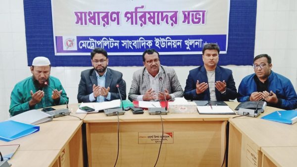এমইউজে খুলনার প্রথম সাধারণ সভা পেশাগত মর্যাদা ও অধিকার আদায় করে দেবো, ঐক্যবদ্ধ থাকুন শেখ মাহতাব হোসেন ডুমুরিয়া খুলনা। খুলনা (০৬ ডিসেম্বর) মেট্রোপলিটন সাংবাদিক ইউনিয়ন (এমইউজে) খুলনার সাধারণ সভা অনুষ্ঠিত